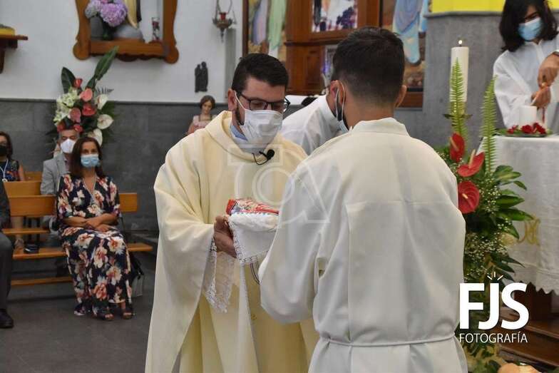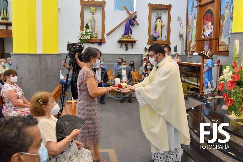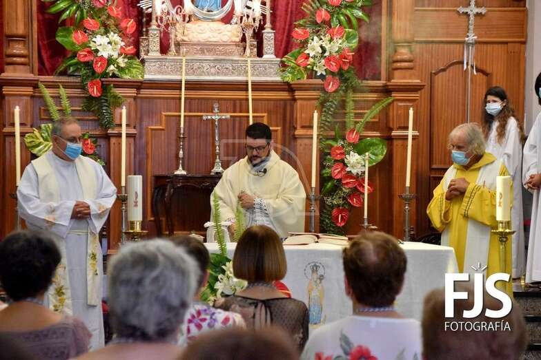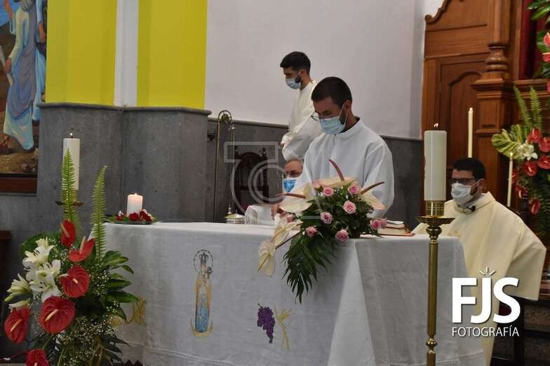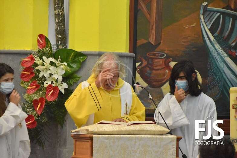 La eucaristía que dio comienzo a las 12.00 horas y que TELDEACTUALIDAD ofreció en directo en conexión con el canal de Youtube de la Parroquia de Las Nieves estuvo presidida por Manuel Fernández y concelebrada por el párroco de Valsequillo, José Antonio Socorro, y el sacerdote Fernando Báez, titular de la de Lomo Magullo y barrios próximos.