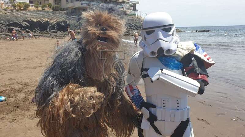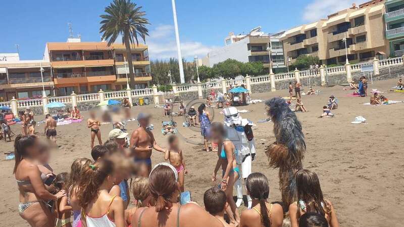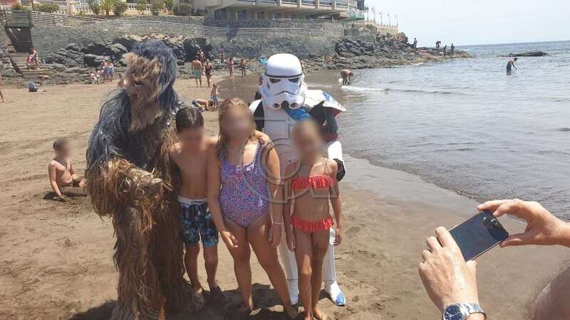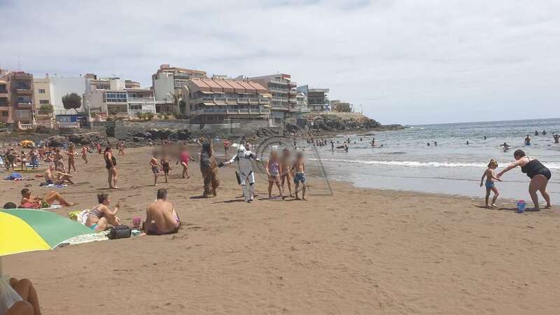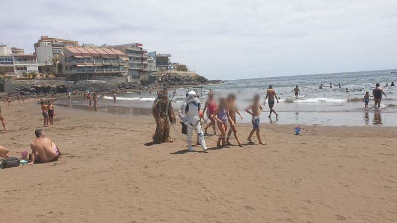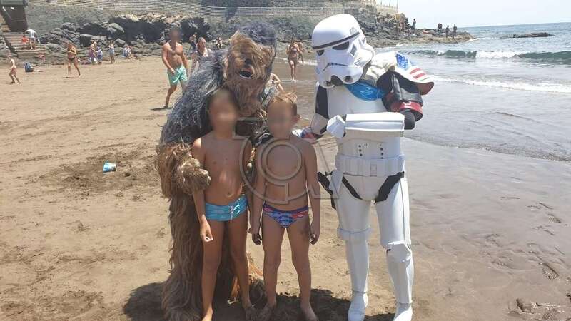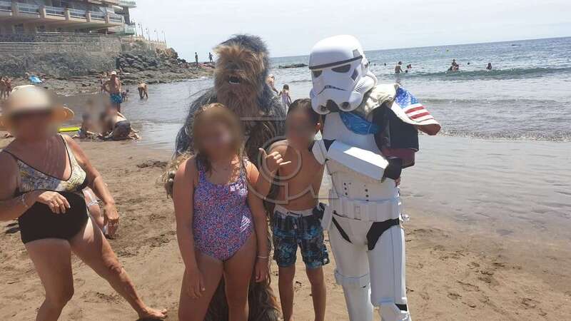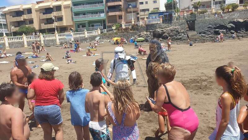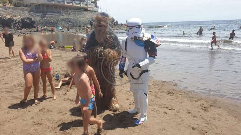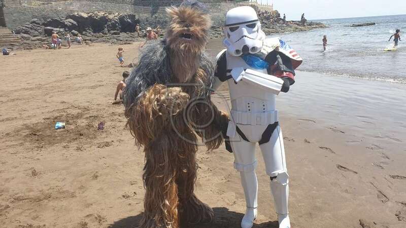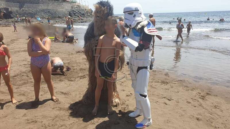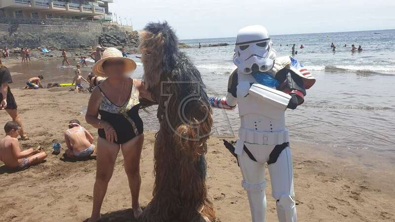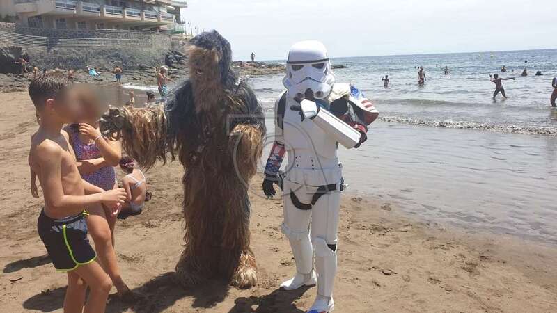 Telde.- Dos personajes de Star Wars aterrizaron este mediodía en la cala teldense de Salinetas, después de un recorrido por la de Melenara, para deleite de los cientos de niños y adultos que se encontraban en ese momento disfrutando de un magnífico día de playa.