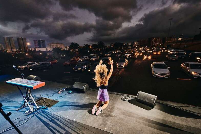 Telde.- El Park in Fest del Cabildo de Gran Canaria celebrado anoche en el aparcamiento de Infecar se convirtió en un novedoso modelo de adaptación de los actos culturales públicos al aire libre a la nueva realidad con la presencia de 1.000 jóvenes de todos los municipios de la Isla que asistieron al espectáculo de música y humor desde el interior de 270 vehículos siguiendo de manera escrupulosa las estrictas medidas de seguridad sanitaria.