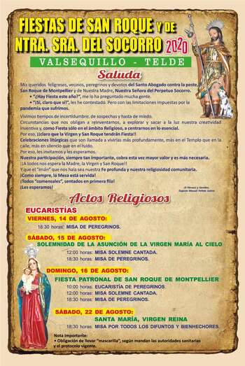Telde.- El barrio de San Roque, a caballo entre Telde y Valsequillo, celebra sus tradicionales fiestas en honor de su patrono, San Roque, y de Nuestra Señora del Socorro. Debido a la pandemia, sólo habrá actos religiosos.