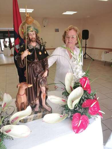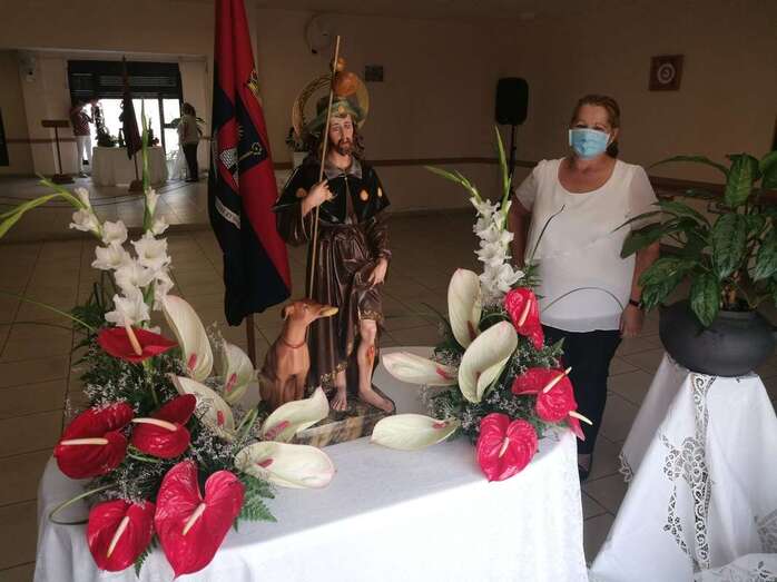 Mari Cordero, miembro de esta asociación vecinal, cantó una plegaría a San Roque, patrono del peregrino, para que “ponga su mano y nos ayude a superar esta crisis sanitaria”.