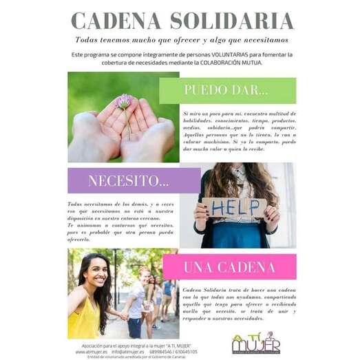 Telde.- La asociación A tí, mujer lanza el proyecto Cadena Solidaria. Una iniciativa que nace para fomentar la ayuda mutua y desinteresada entre las personas.