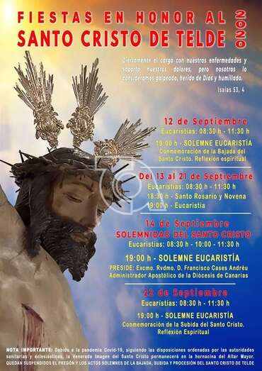 De acuerdo con las disposiciones ordenadas por las autoridades sanitarias y eclesiásticas, la venerada imagen del Santo Cristo de Telde permanecerá en su lugar habitual de la hornacina superior del Altar Mayor de la Basílica de San Juan y se suspenden el pregón, las solemnes ceremonias de Bajada y Subida y también la procesión por las calles del conjunto histórico.