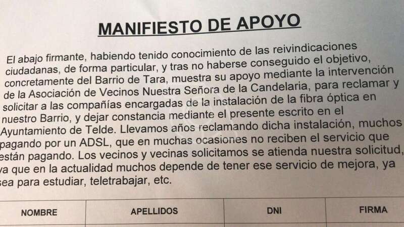 Telde.- El colectivo vecinal de Tara ha iniciado la recogida de firmas entre los residentes en el barrio para solicitar la instalación de fibra óptica, un recurso del que carece esté núcleo residencial situado a pocos kilómetros del casco urbano de la ciudad.