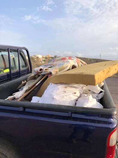 Telde.- Vecinos de Lomo Blanco y empleados de la empresa de extracción de áridos Francisco Martín han limpiado en las últimas horas las cunetas del acceso al barrio, donde se amontonaban escombros, colchones, bolsas, parabrisas de vehículos, etcétera.