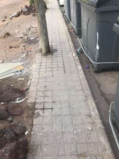 Telde.- Excrementos y orines de perros, baldosas estropeadas, mucha suciedad y hasta láminas de cristales al lado de la acera. Todo esto sortean a diario los menores y sus familiares en la calle de Torricelli, en Casas Nuevas, en el recorrido que realizan desde sus domicilios hasta la parada de guaguas.