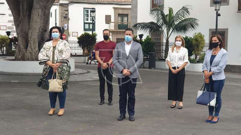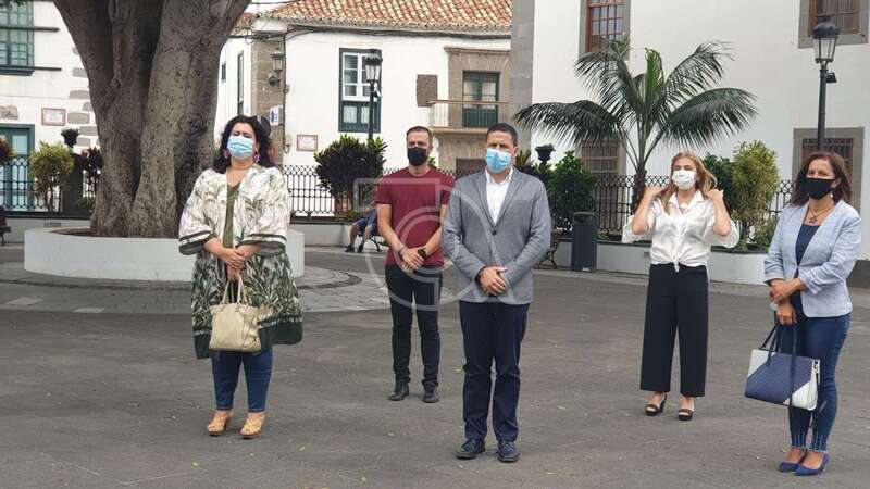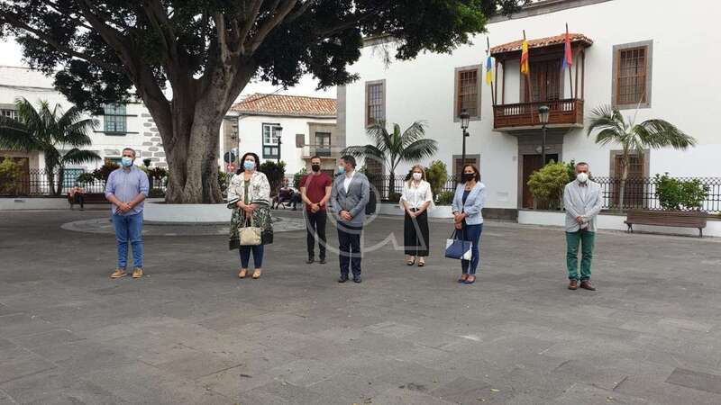 Una representación de la Corporación teldense, con el alcalde Héctor Suárez a la cabeza y varios concejales del grupo de gobierno y la oposición, se concentró en la plaza de San Juan, frente a las Casas Consistoriales, en señal de condena de este caso que el Gobierno de Canarias ya ha calificado de feminicidio.