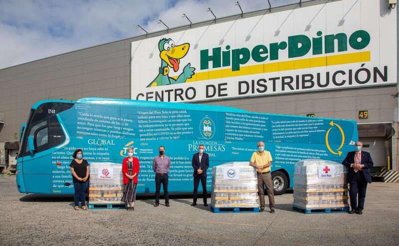 El broche de oro a esta iniciativa solidaria se puso este martes en las instalaciones logísticas de Hiperdino en el municipio de Telde, escenario elegido para hacer entrega de los alimentos recaudados.