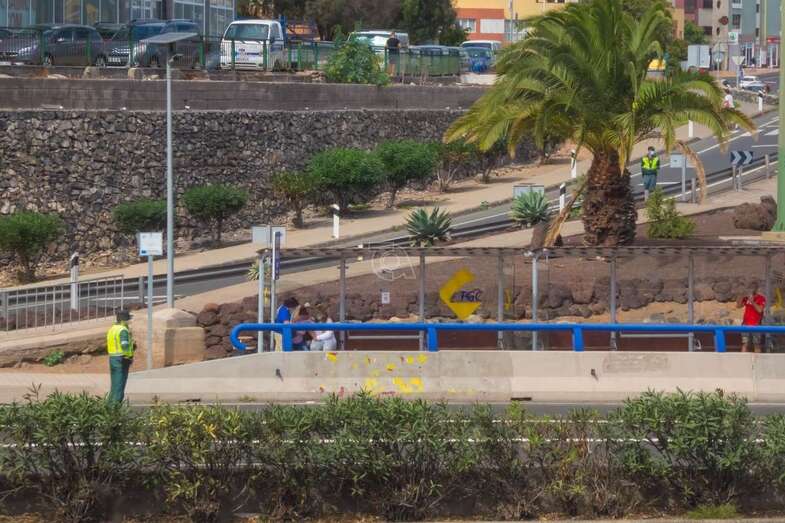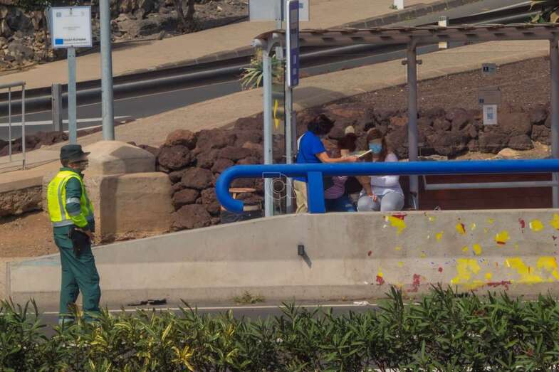 Telde.- Una pareja de motoristas de la Guardia Civil de Tráfico tuvo este martes un gesto humanitario con una mujer que se sintió indispuesta cuando se encontraba esperando la guagua en la parada de Global que está en el Cruce de Melenara, junto a una vía de servicio de la GC-1, en dirección sur.