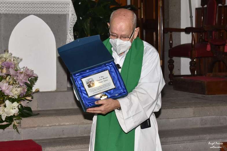 El pasado sábado, Eugenio Peñate tuvo la oportunidad de despedirse de sus feligreses de San Roque, cuya demarcación atendió durante 17 años seguidos, con una misa en la que el alcalde del Ayuntamiento de Valsequillo, Francisco Atta, le hizo entrega de una placa en agradecimiento por su dedicación y entrega durante todos estos años a la parroquia del Valle de San Roque y “por su cariño y colaboración con el municipio de Valsequillo”. En este sentido, y en representación de la parroquia, Alfredo Velázquez, también entregó una placa por “la labor sacerdotal desarrollada durante todos estos años” en el Valle.