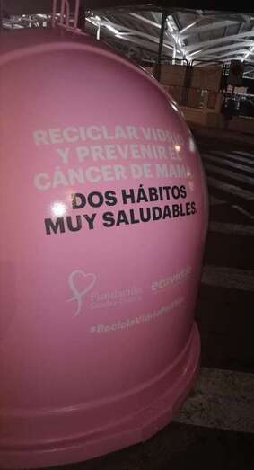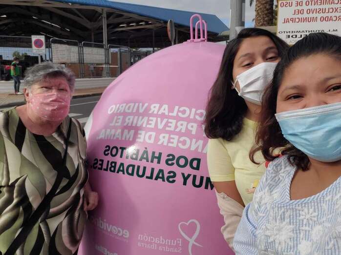 Telde.- El colectivo vecinal El Roque Azucarero se ha sumado a la campaña Recicla con ellas, impulsada por Ecovidrio con motivo del Día Mundial contra el Cáncer de Mama depositando envases de vidrio en los dos iglús rosas instalados en el Mercado Municipal de Telde.