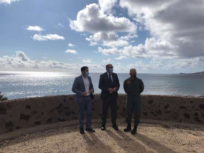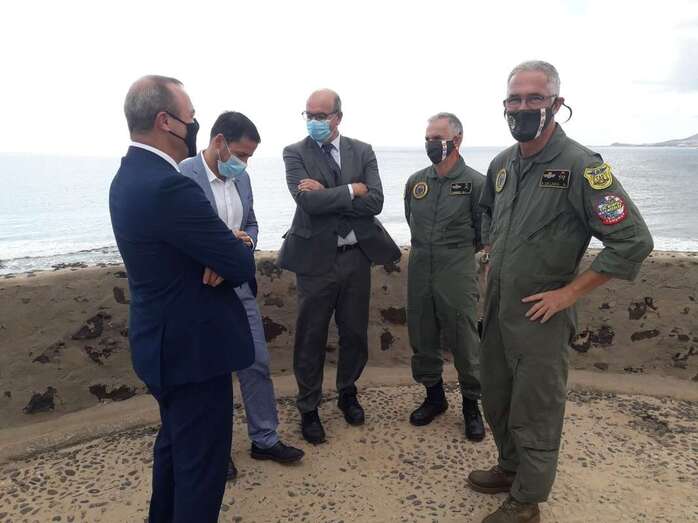 Telde.- El alcalde de Telde, Héctor Suárez, visitó este viernes la Base Aérea de Gando junto al delegado del Gobierno en Canarias, Anselmo Pestana, el alcalde de Las Palmas de Gran Canaria, Augusto Hidalgo, y la alcaldesa de Ingenio, Ana Hernández, para conocer de primera mano el entrenamiento que está llevando a cabo el ejército Ocean Sky en la edición 2020.