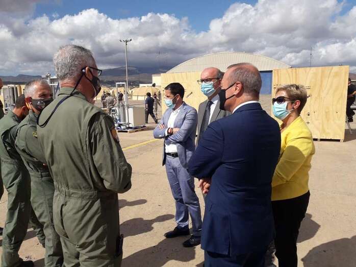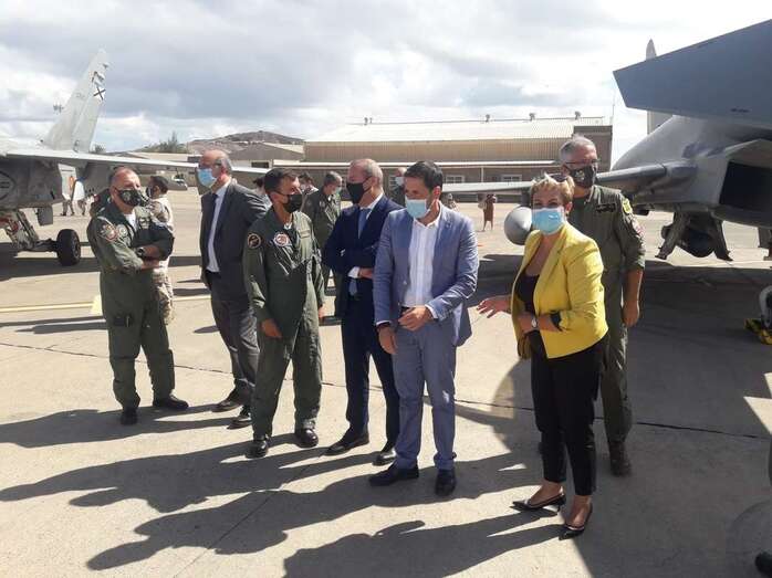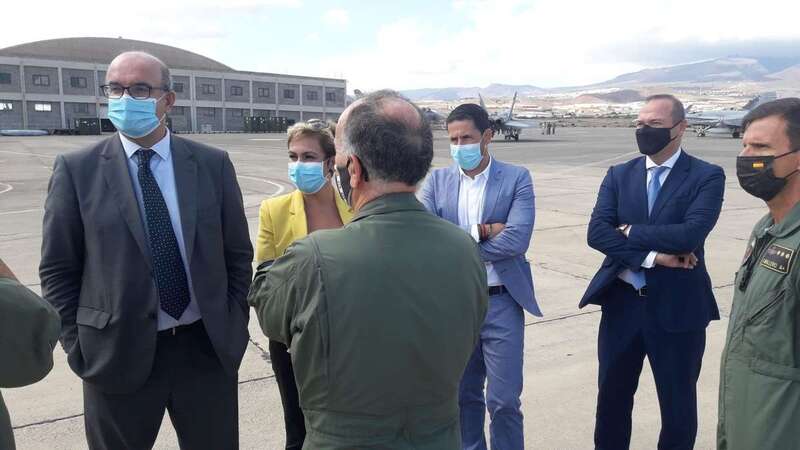 Las autoridades fueron recibidas por el teniente general jefe del Mando Aéreo de Combate del Ejército del Aire (Macom), César Miguel Simón López, y el general jefe del Mando Aéreo de Canarias (Macan), Juan Pablo Sánchez de Lara, quienes mostraron el desarrollo de las actividades militares que efectúan desde el 17 de octubre y que concluirán el próximo 30 del presente mes.