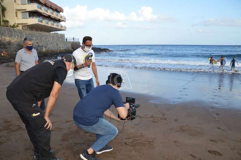 Un equipo del programa Buenas Tardes Canarias con el reportero Juan Antonio Cabrera al frente se desplazó esta tarde a la playa teldense para recoger las impresiones de los protagonistas del episodio vivido el pasado fin de semana y de sus padres.