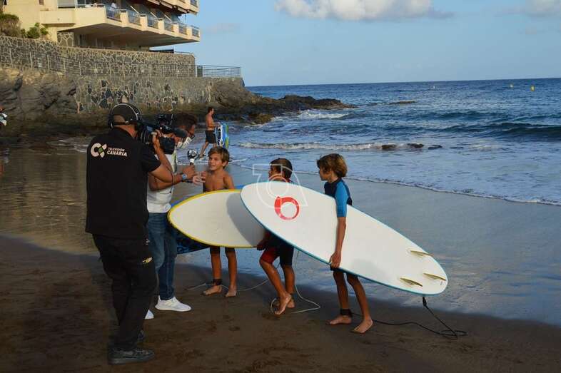 Telde.- La Televisión Canaria ha tenido esta tarde el bello gesto de reconocer a los pequeños héroes de Salinetas que el pasado sábado prestaron auxilio con sus tablas de surf a personas mayores que pasaban apuros por el fuerte oleaje que azotaba en esa jornada la costa de Telde, tal y como informó TELDEACTUALIDAD.