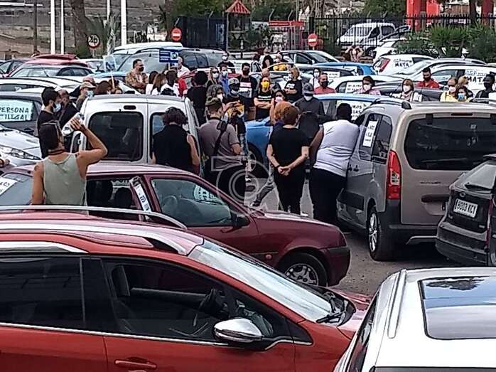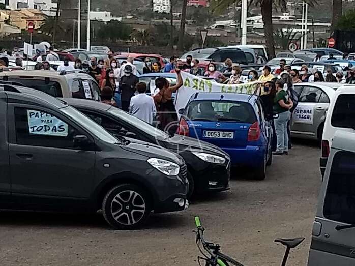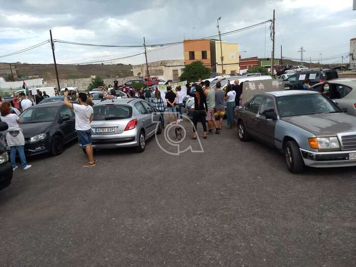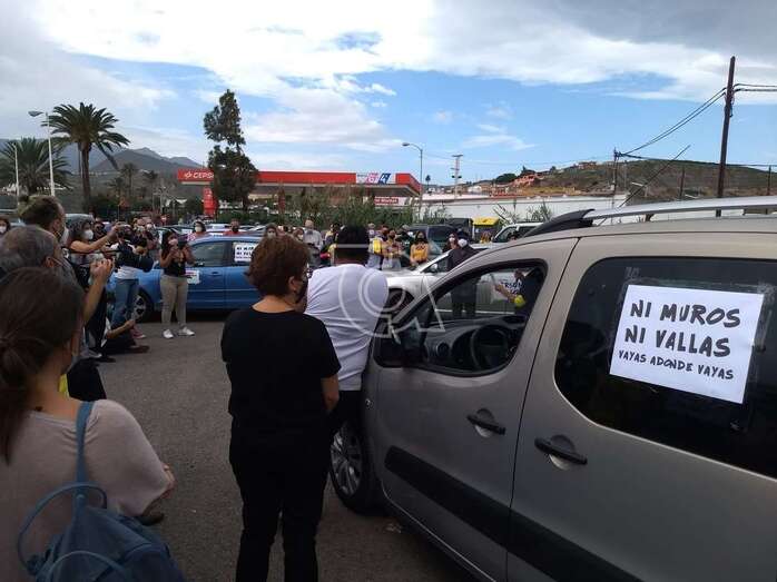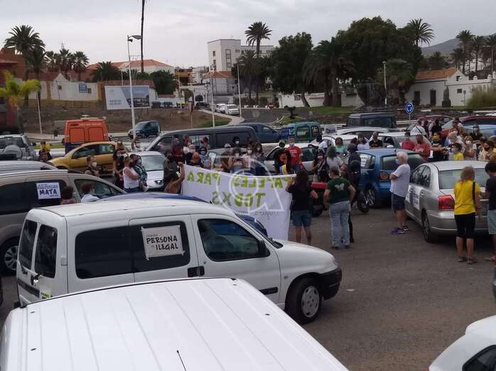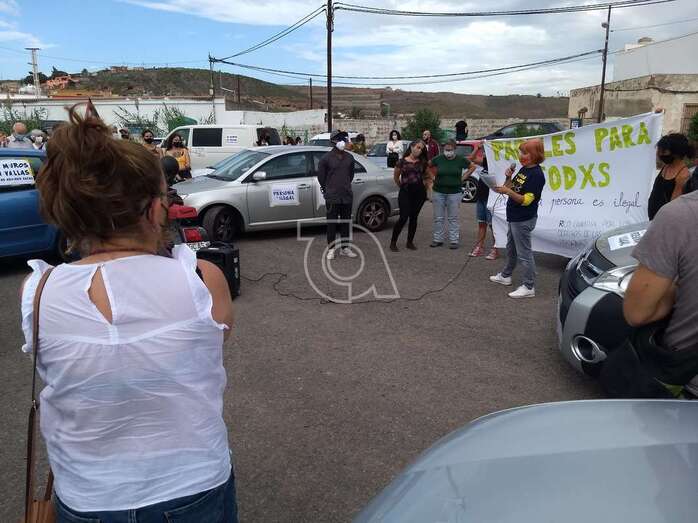 Telde.- La caravana protesta organizada este sábado por la Red Canaria por los Derechos de las Personas Migrantes, bajo el lema “Papeles para tod@s. Ninguna persona es ilegal”, hizo un alto en su camino en la explanada de El Cubillo, en Telde, tras salir a las 10.00 horas de la Fuente Luminosa de la capital grancanaria, en su recorrido hasta Mogán.