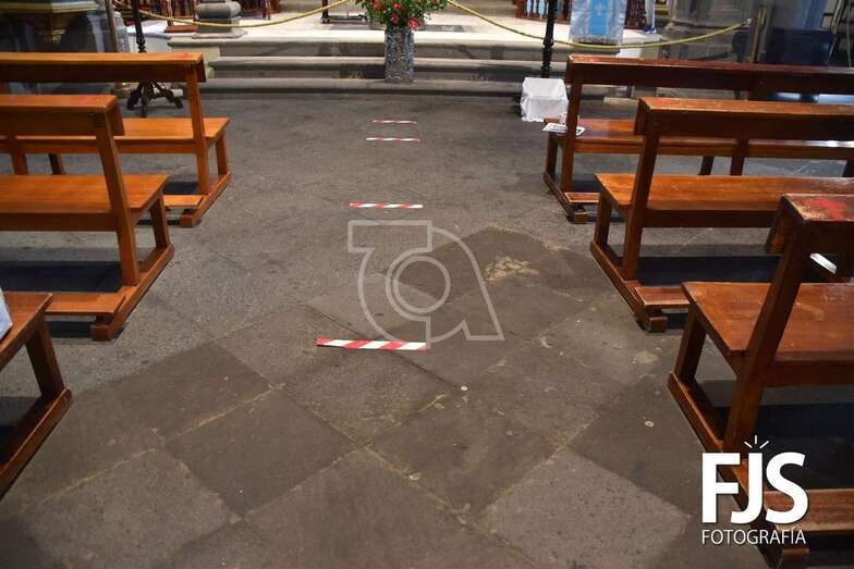 El aforo del templo es de 100 personas, pero para evitar aglomeraciones en su interior su ocupación se limita a 50, siendo obligatorio que los feligreses porten mascarilla, hagan uso de los dispensadores de geles hidroalcohólicos, no toquen los objetos y respeten el circuito delimitado por cintas en el suelo. La parroquia ha fijado, además, una puerta de entrada y otra de salida del santuario y un tiempo máximo de 10 minutos para rezar ante la imagen.