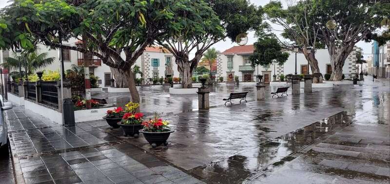 Agüita que sobre nuestra tierra agradece el agro y la propia piel del paisaje que, con graciosa y agradecida de natural esencia, con prontitud reverdece, aleja el recuerdo de espantosas imágenes de flamígeras escenas destruyendo la belleza de nuestros pinares y entornos cumbreros. Gracias agua bendita benefactora, la ciudad refleja sobre su lámina urbana de adoquinadas calles y callejones, la arquitectura de su patrimonio histórico. Todavía bajo la cautela sanitaria, el aire que limpias motiva la esperanza de un tiempo mejor libre de virus e inmundicias pandémicas.