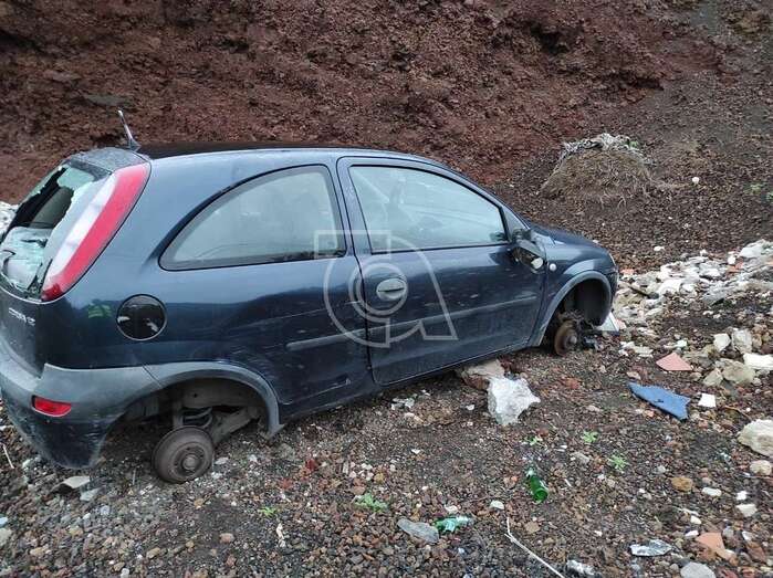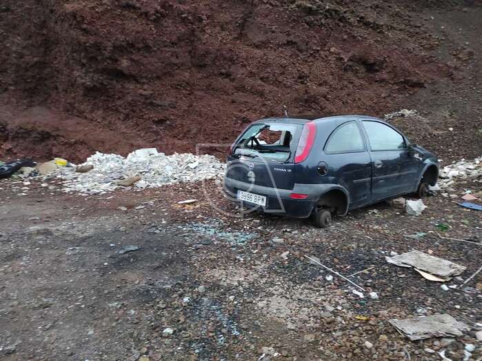 Se trata de un turismo marca Opel Corsa, matrícula 9996 BPW, que lleva allí desde hace unos días sin ruedas y con la luna trasera y  los cristales de las ventanas rotos.