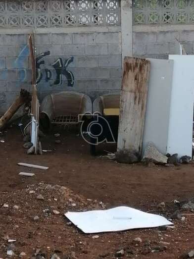 Chamizo pegado al muro oeste del campo municipal de fútbol de Melenara/TA. Chamizo pegado al muro oeste del campo municipal de fútbol de Melenara/TA.