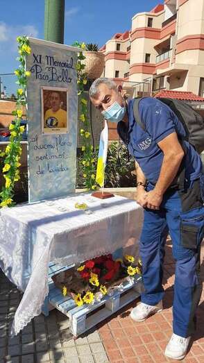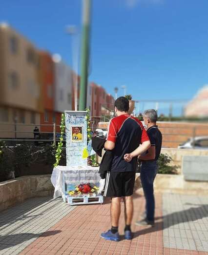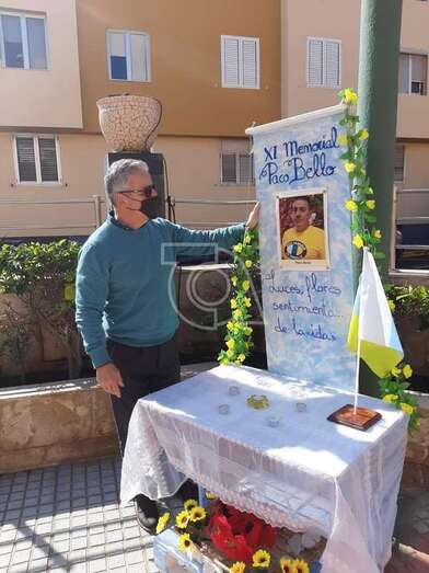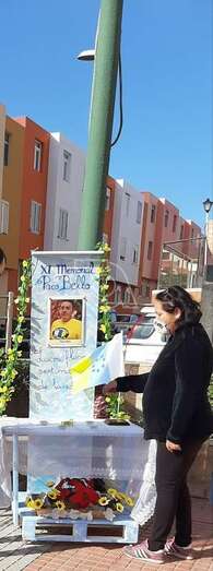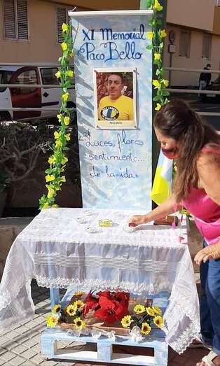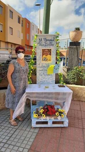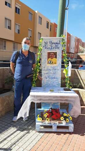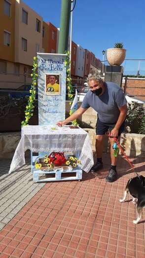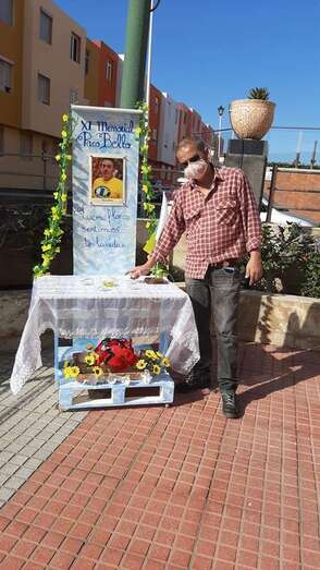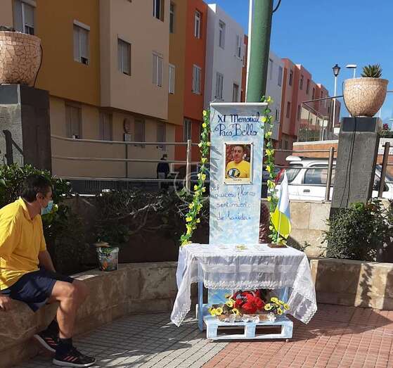 Telde.- Un pequeño altar recuerda estos días en la plaza de La Garita al desaparecido sacerdote Paco Bello, fallecido en el año 2009 siendo cura en este barrio teldense y también del de Marpequeña, y al que estos días se rinde homenaje en un memorial.