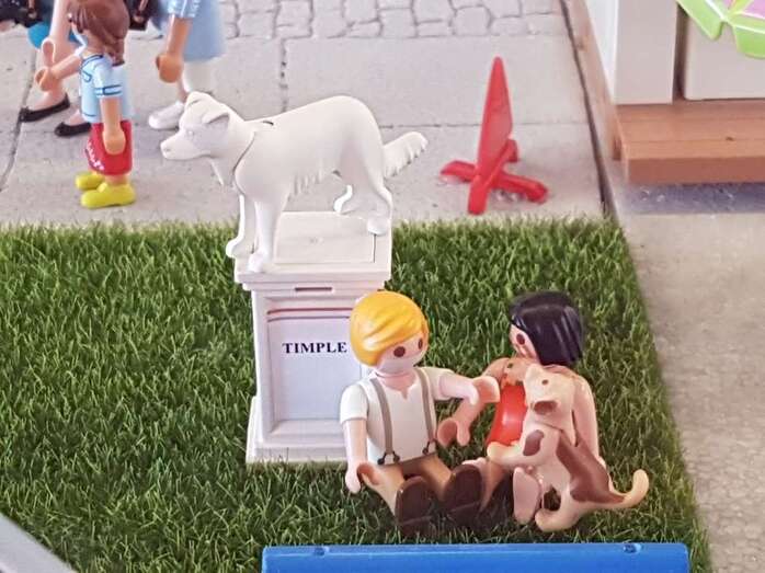 Asimismo, los animales también tienen un espacio destacado en el diorama a través de la representación de un adulto mientras realiza una adopción responsable en un centro de acogida o el homenaje al perro lanzaroteño Timple.