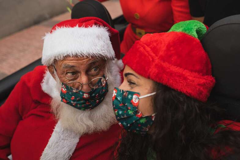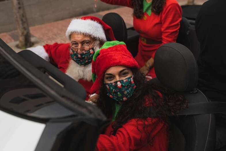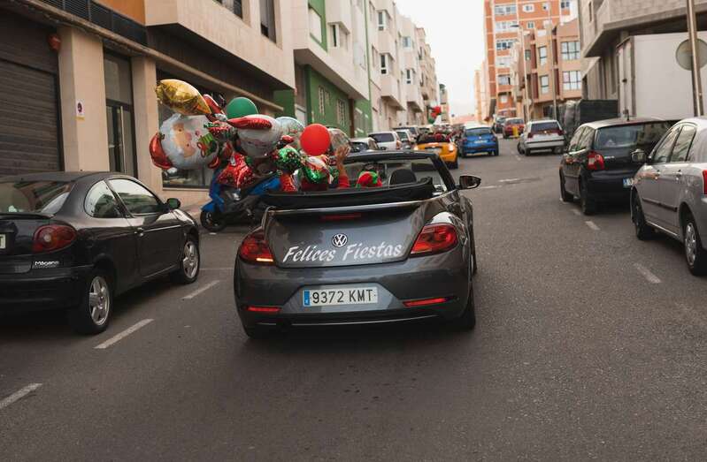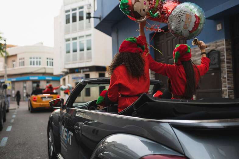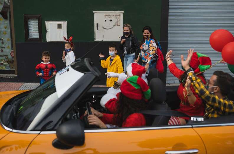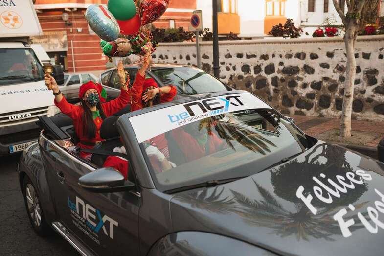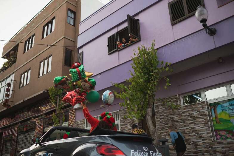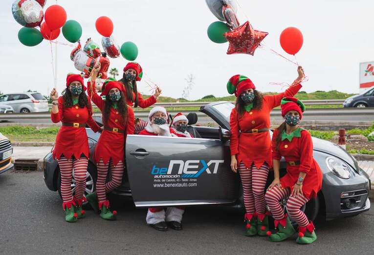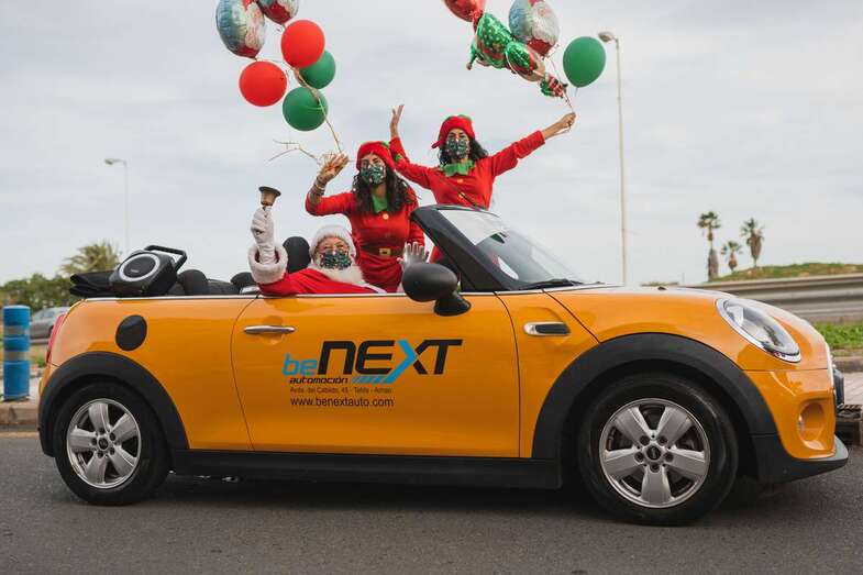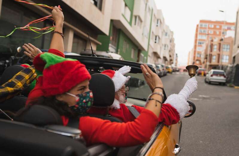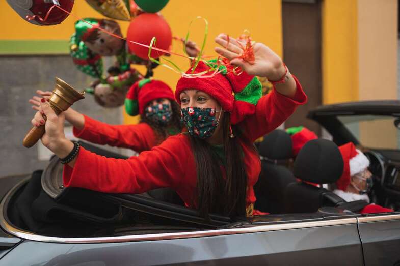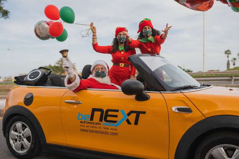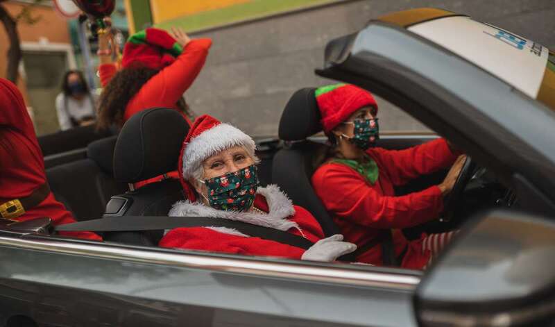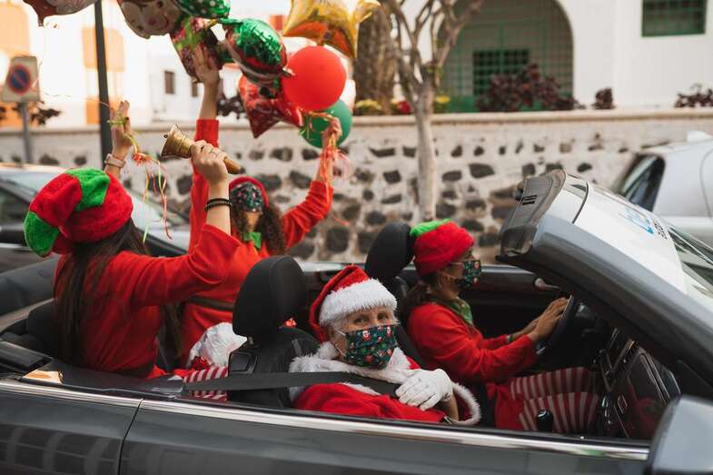 El paseo en coche del gordinflón de traje rojo y de sus elfos se anunció días atrás por la Concejalía de Desarrollo Local que tuela la edila Lidia Mejías, pero sin desvelar ni el día ni la hora para evitar aglomeraciones de personas en las vías de Telde, aun así fueron cientos los menores teldenses que salieron a la calle a saludar y solicitar sus deseos de regalo y buena nueva para el próximo año después de unos duros meses de pandemia.