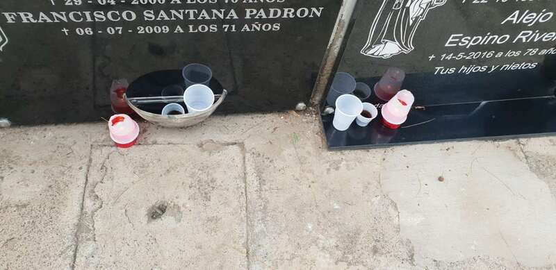 Telde.- Extraño hallazgo el que un vecino de Telde realizó este martes cuando visitaba el nicho de un familiar en el cementerio de San Juan. Se encontró con que alguien había depositado junto a muchas de las lápidas una vela roja cubierta por un vaso y dos recipientes de plástico con distintos líquidos sin determinar.
