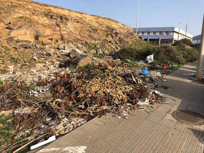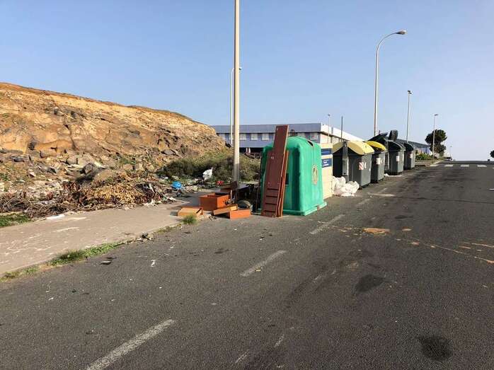 Aseguran que llevan semanas llamando y presentando quejas vía telemática pidiendo que el servicio de limpieza acuda a retirar escombros y enseres que permanecen junto a los contenedores de basura. El barrio, afirman, se ha convertido en un punto limpio clandestino en el que empresas y particulares abandonan sus residuos (material de obra, muebles, madreas, palos, cajas, restos de poda y hasta electrodomésticos).