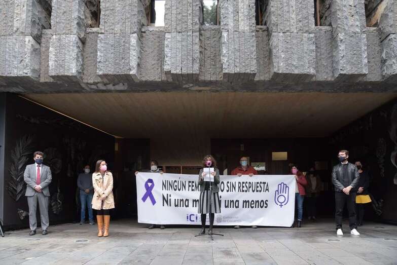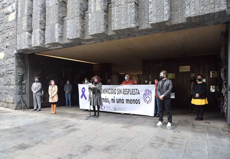El Ayuntamiento de Telde secundó este mediodía la concentración y el minuto de silencio que la Delegación del Gobierno en Canaria convocó en todas las administraciones tras confirmarse que este feminicidioa es un caso de violencia machista, que eleva a 96 el número de mujeres que han sido asesinadas por sus parejas en las Islas desde 2003, cuatro de ellas en el pasado 2020.