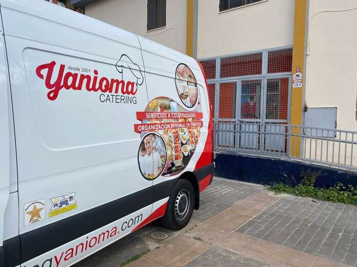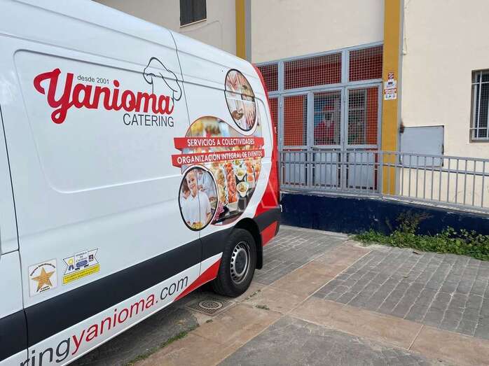 El furgón del catering que suministra comida al centro, junto a la puerta de acceso/TA. El furgón del catering que suministra comida al centro, junto a la puerta de acceso/TA.