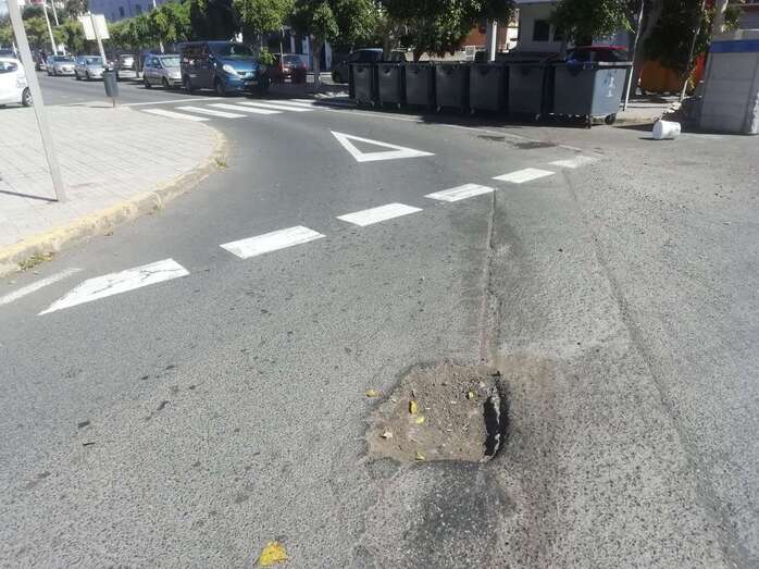 Telde.- Residentes en el enclave costero teldense de Salinetas alertan de un peligroso socavón al final de la Avenida Américo Vespucio, en su confluencia con la rotonda de la antigua Cinsa.