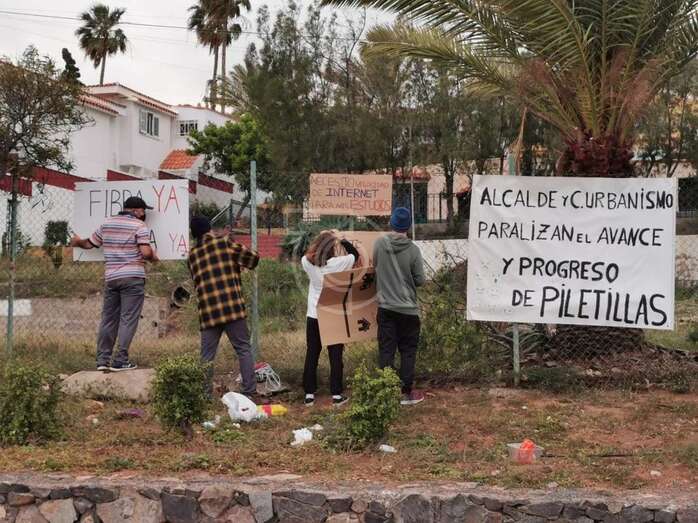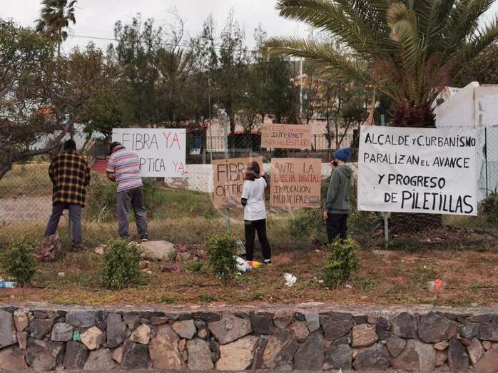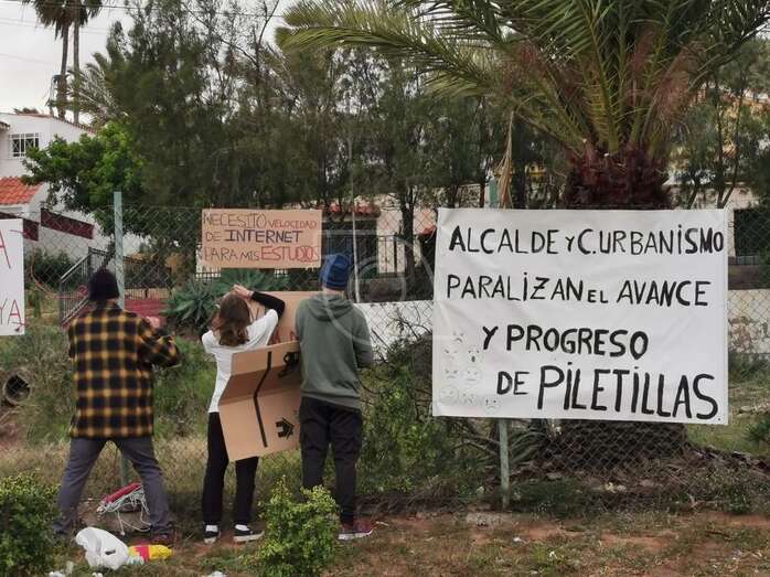 Telde.- Piletillas se ha llenado de carteles y pancartas con textos reivindicativos ante el “desinterés” del Ayuntamiento de Telde para facilitar que el barrio pueda tener acceso a la fibra óptica.