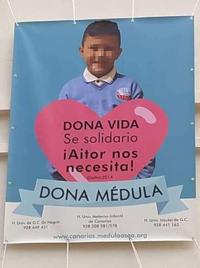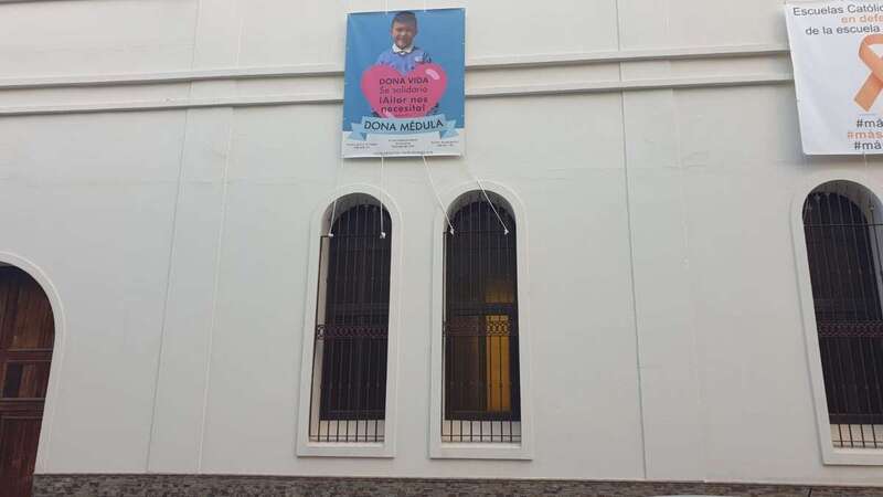 Telde.- El colegio María Auxiliadora de Telde visibiliza mediante un cartel colgado en su fachada la búsqueda de un donante de médula ósea para el pequeño Aitor, alumno de este centro y que desde el pasado 10 de febrero está ingresado en el Materno Infantil por una mielodisplasia (un tipo de cáncer de sangre).