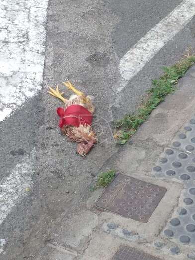 Telde.- Una gallina muerta con un lazo rojo rodeándole el cuerpo ha sido hallada muerta esta tarde en la calle de San Agustín, en la primera esquina a la izquierda entrando al núcleo poblacional teldense de Marpequeña desde la autovía GC-1.