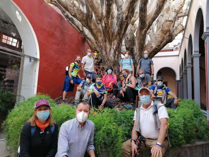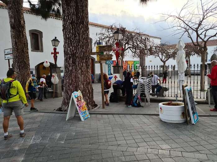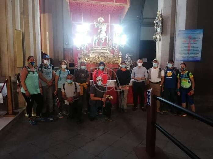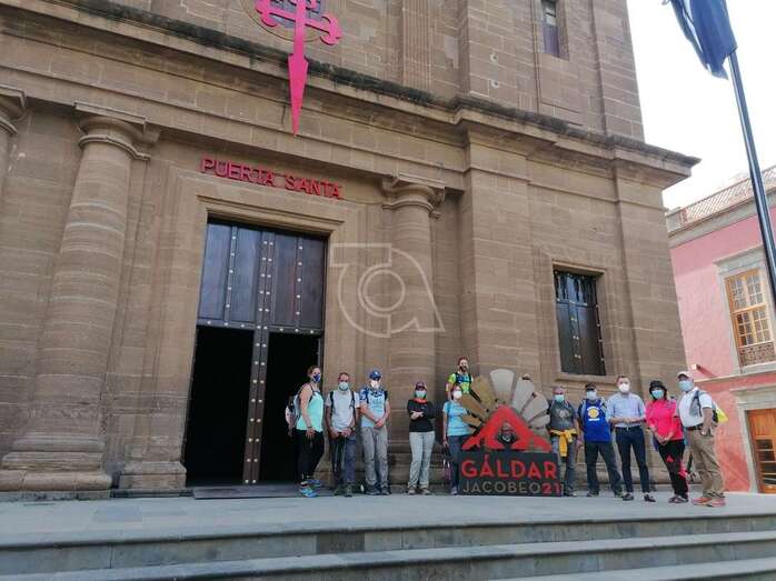 La ruta partió del municipio sureño y, después de realizar noche en Tunte y Tejeda y recorrer casi 40 kilómetros, los caminantes llegaron a la ciudad norteña que celebra este 2021 el Año Santo Jacobeo, donde fueron recibidos por el alcalde Teo Sosa en la Puerta Santa del templo en honor del Apóstol Santiago y con el que dejaron testimonio gráfico de su visita a las Casas Consistoriales.