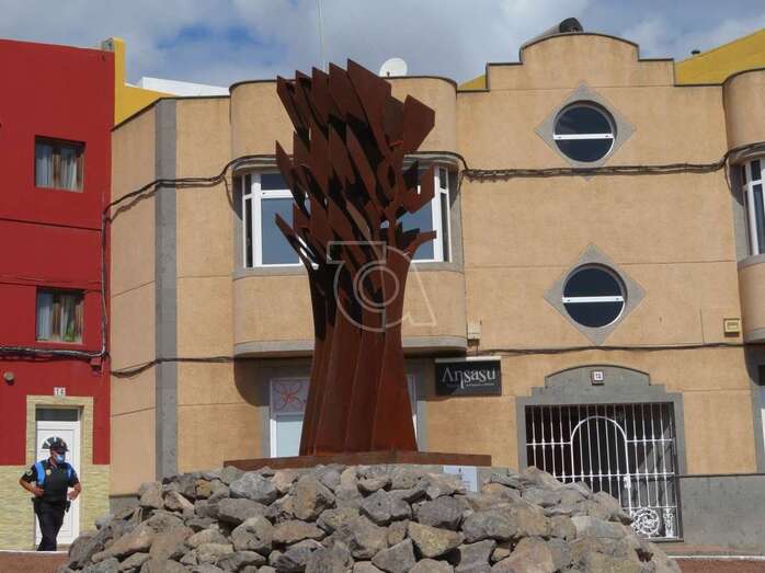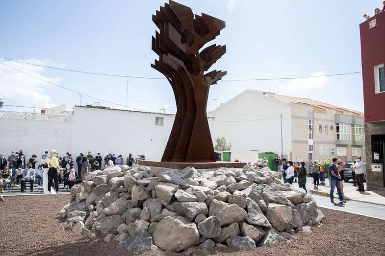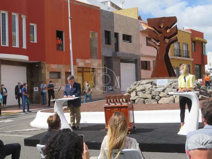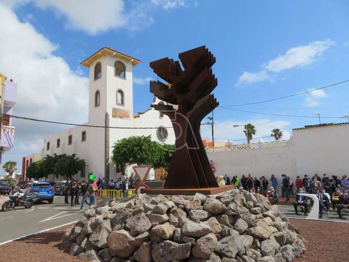 Telde.- La ciudad de Telde brindó este miércoles en el barrio de El Calero un reconocimiento a los profesionales del sector sanitario por su desempeño durante la pandemia de la covid-19. Un homenaje en forma de escultura, una obra del artista Máximo Riol y que lleva por nombre El árbol de Hipócrates, que se inauguró en la confluencia entre las calles López Botas y Pitágoras, en los accesos al Centro de Salud y al Centro de Atención Especializada (CAE).