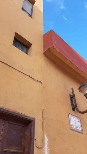 Telde.- El Patronato La Sal de La Garita denuncia el peligro que representa la caída de cascotes de la fachada del templo bajo la advocación del Sagrado Corazón de Jesús.