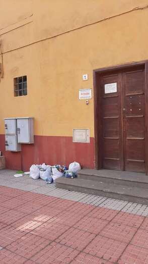 “Cada día y cada tarde los vecinos nos encomendamos... pues la afluencia de niños y vecinos corren peligro ante el deterioro de la fachada del templo”, se lamenta Julia Martel, que denuncia también “ el bochornoso espectáculo de los objetos depositados por los vecinos para acciones benéficas y estos no se recogen pasando días y días tirados y esparcidos por la plaza”.