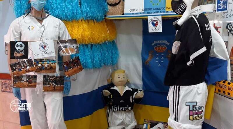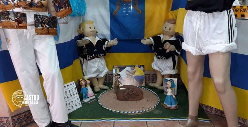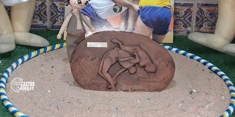 Una foto genérica de lucha y un terrero en miniatura, con una pequeña escultura de barro con de la famosa agarrada de Borito, unido a la bandera canaria y un mensaje sobre nuestra idiosincrasia, completan esta obra, que está recibiendo elogios por las numerosas personas que ya la han visitado, según publica Canarias7.