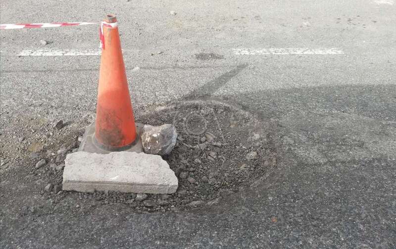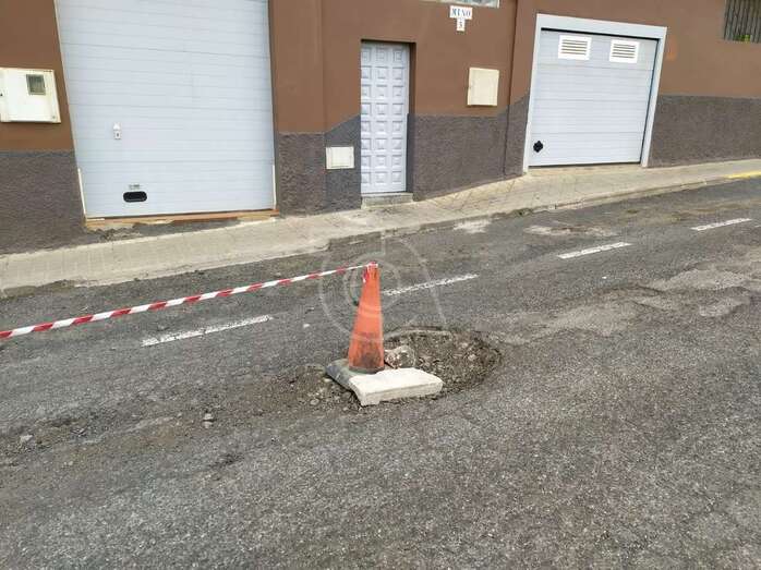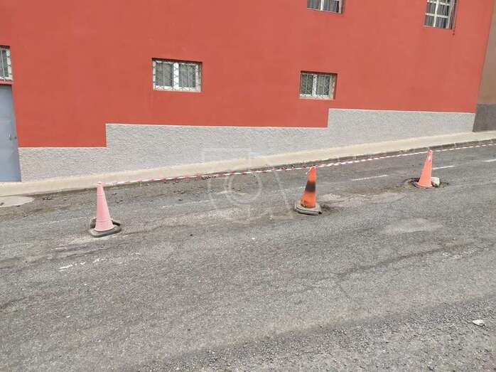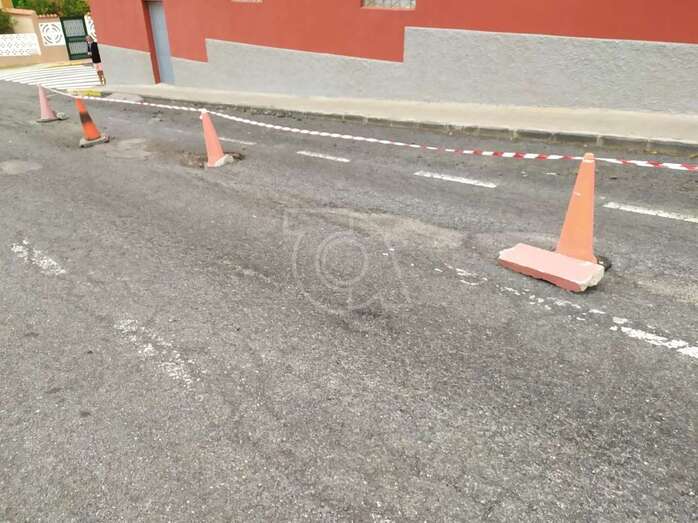 Caserones Altos coloca conos en una calle para advertir del peligro de los socavones