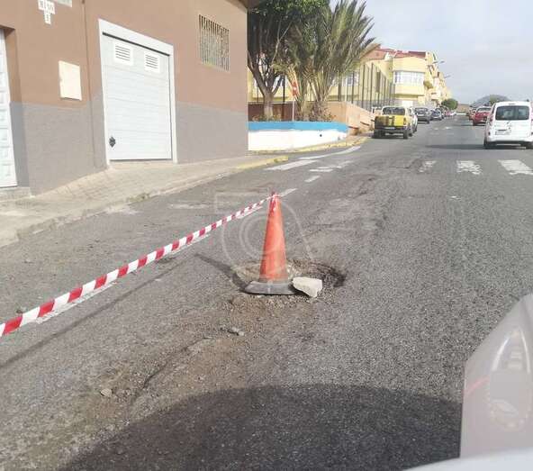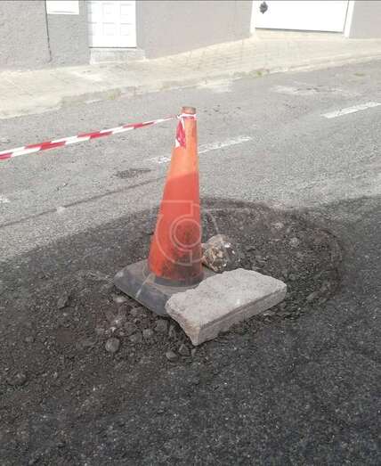Telde.- El colectivo vecinal El Pilar ha señalizado con conos la calle de Miño para advertir a los conductores del peligro de los baches y socavones que salpican esta vía de Caserones Altos, donde más de un conductor ha visto como se reventaban los neumáticos de las ruedas de sus vehículos.
