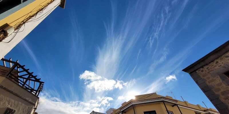 De las sorpresas que cada día nos regalan las condiciones climatológicas que sobre el municipio de Telde, por su situación geográfica, se suceden en esta estación primaveral que toca a su fin el próximo 21 de este mes de junio, el pasado miércoles 2, los cielos nos dejaron disfrutar de un escenario tocado por la mano del mejor artista que, sobre el lienzo y tras el primer plano de su expresión artística, dibuja a pinceladas sueltas formaciones caprichosas de nubes en contrastes con los contraluces de los últimos rayos de sol que preceden al ocaso, solo mirar, observar y sentir la sensación de un bello, singular y oportuno celaje, que sobre techumbres, calles, callejones, edificios, vegetación y nuestras propias cabezas, deja sus templadas ondas de luz y calor para despedir la tarde con sus preciosas formas naturales.