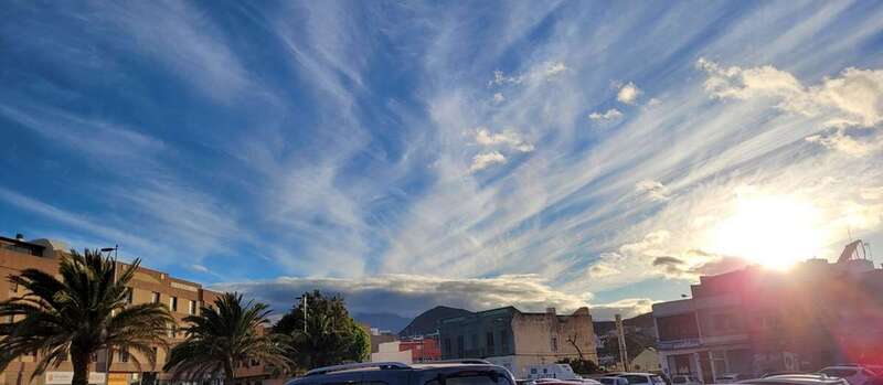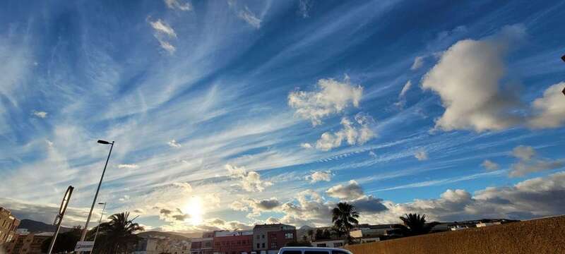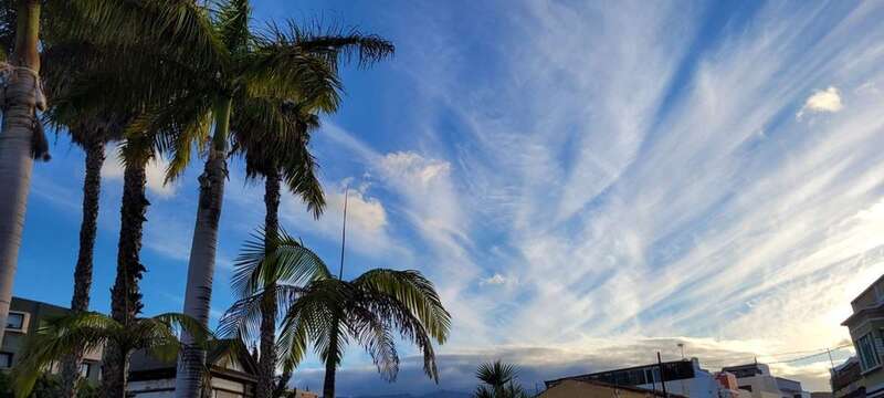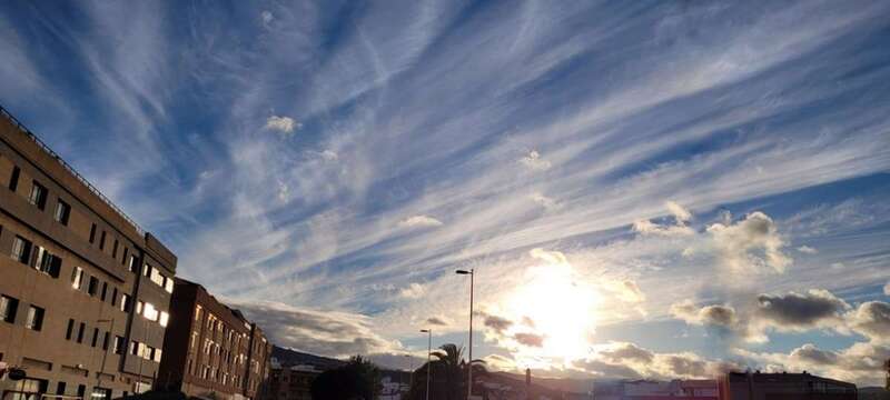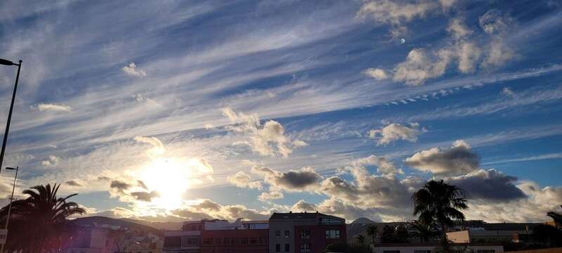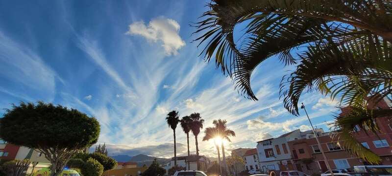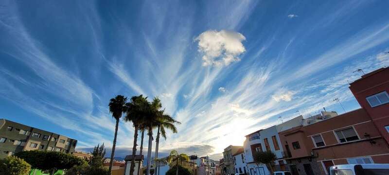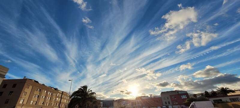 Telde.- El colaborador de TELDEACTUALIDAD Jesús Ruiz Mesa comparte un reportaje gráfico y reflexión sobre una tarde primaveral en Telde, con imágenes de un cielo azulado salpicado de trazas blancas y de candilazos con nubes tiñéndose en tonos rojizos y anaranjados.