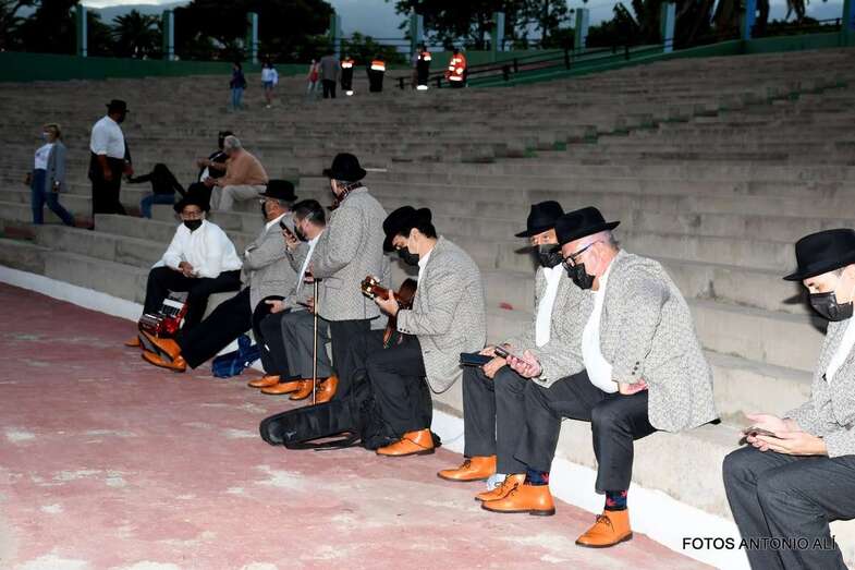 Ayer sábado, se proyectó a las 21.00 horas en una pantalla gigante el microdocumental Recorrido etnográfico de Telde y sus fiestas, de ocho minutos de duración, que ha sido elaborado por la Concejalía de Festejos para recoger la esencia de las fiestas del municipio, y las agrupaciones Esencia de Tradición y Bejeque ofrecieron después un concierto, a las 21.30 horas, junto al cuerpo de baile Erasmo Hernández.