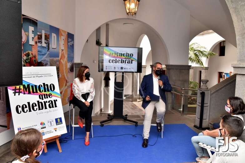 La alcaldesa Carmen Hernández y el concejal de Políticas de Igualdad, Jonay López, presentaron en las Casas Consistoriales de San Juan la programación diseñada para celebrar el Día Internacional del Orgullo LGTBI+ que precisamente se conmemora este lunes. Una campaña que se inició con el izado de la bandera arcoíris y la colocación de la bandera trans y que continuará esta tarde en la biblioteca Salud Torón del parque de Arnao (17.00 horas) con una jornada formativa a cargo del colectivo Gamá y que lleva por título Hablemos de lo que no se habla Diversidad Afectivo Sexual y esta noche con la iluminación de la bandera del Orgullo en el muelle de Melenara y en el edificio municipal de El Cubillo (20.30 horas). Esta última proyección tendrá lugar todas las noches de esta semana.