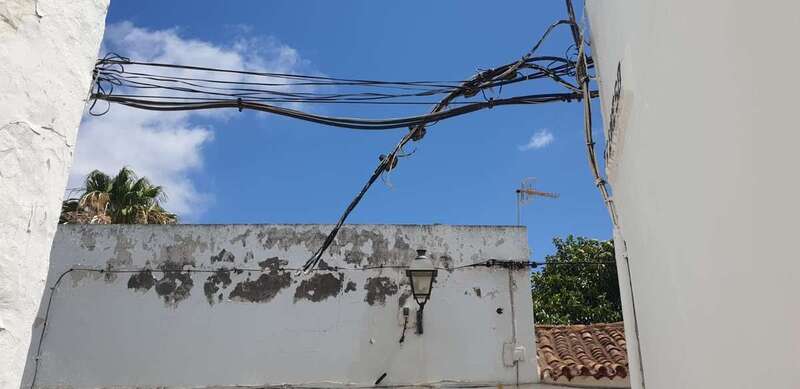 Telde.- Los vecinos del barrio histórico de San Francisco viven con preocupación e incertidumbre el desprendimiento de un cable del tendido eléctrico en la calle de Altozano.