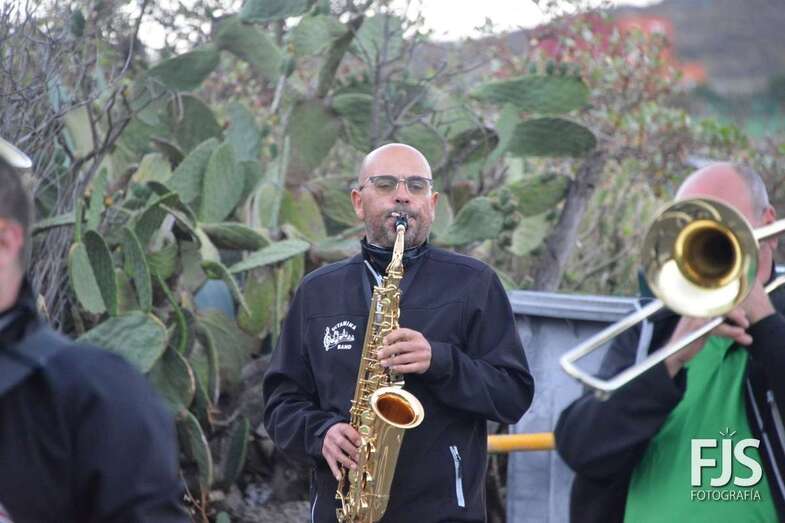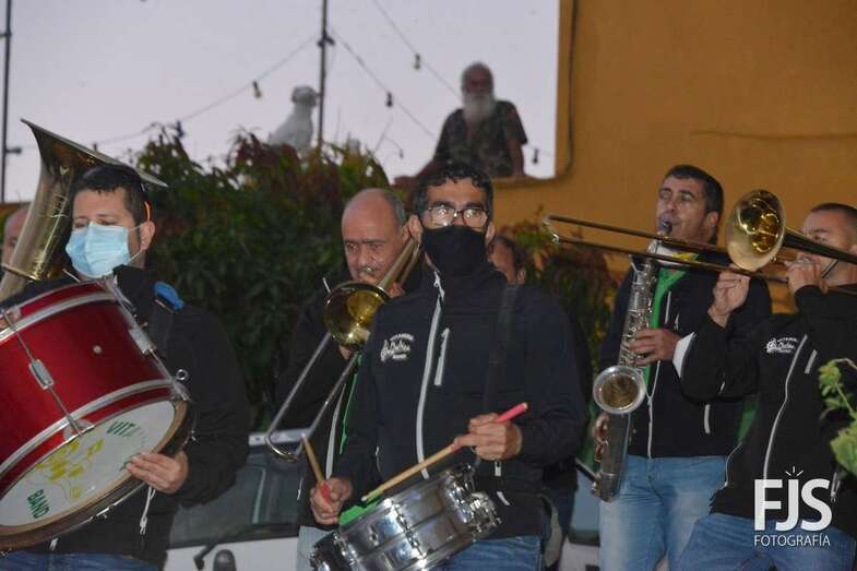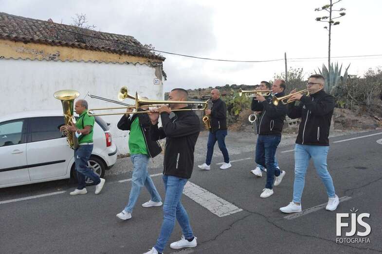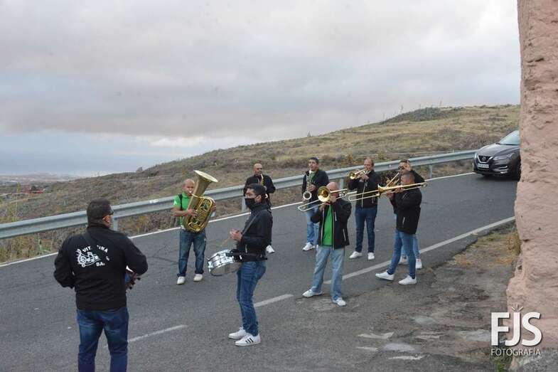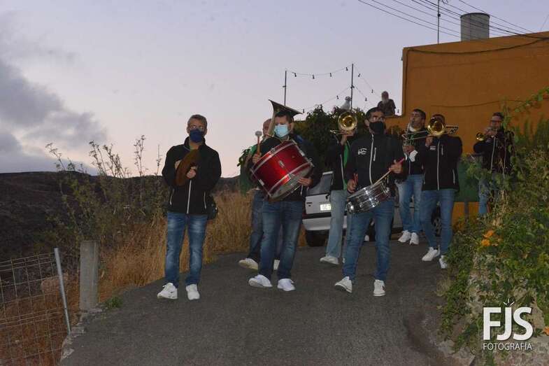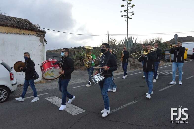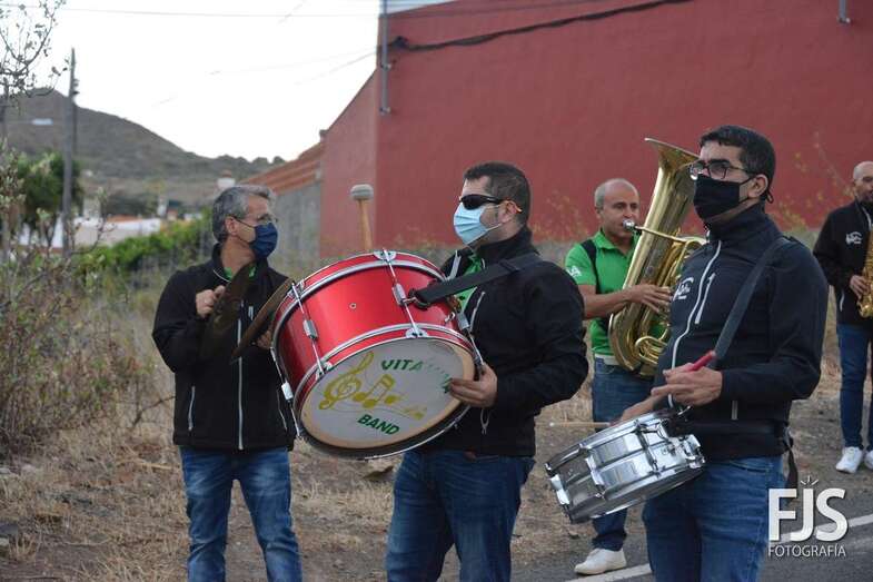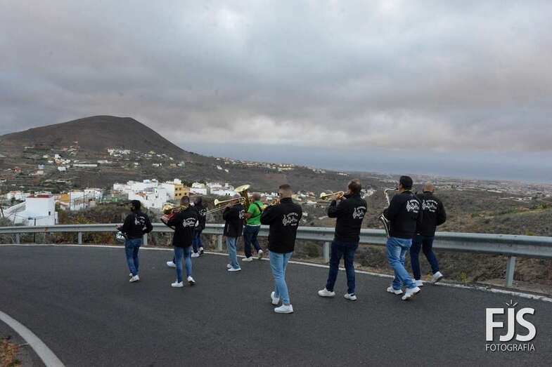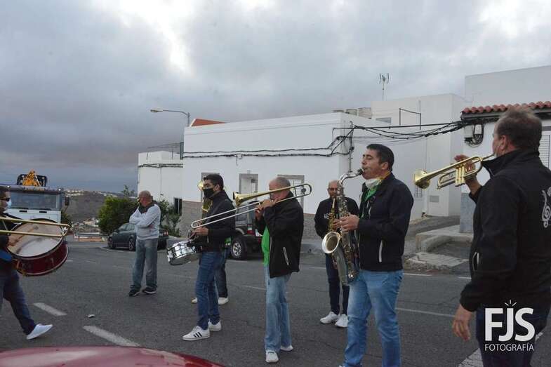 El periplo comenzó en el cruce próximo a la Montaña de Los Barros, coronada como siempre por estas fechas por una gran cruz encendida, y finalizó en el entorno del Consultorio Médico, tras visitar los miembros de Vitamina Band el tempo para hacerle llegar su música a la patrona del barrio y Alcaldesa Perpetua de Telde.