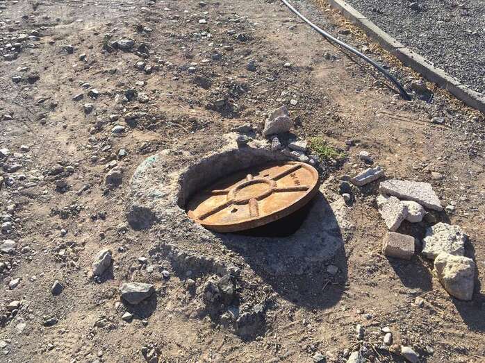 Los vecinos del sector costero de Taliarte alertan de la presencia de tapas del alcantarillado que sobresalen en un camino sin asfaltar que constituyen un peligro para los vehículos y personas que transitan por la zona.