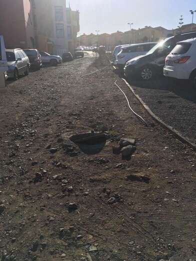 Se localizan en la calle que discurre entre un grupo de viviendas que dan al paseo costero y la plaza a medio hacer. Por este camino de tierra transitan a diario vehículos y personas, tanto adultos como niños y las arquetas semi abiertas de la red de saneamiento encierran un grave peligro.